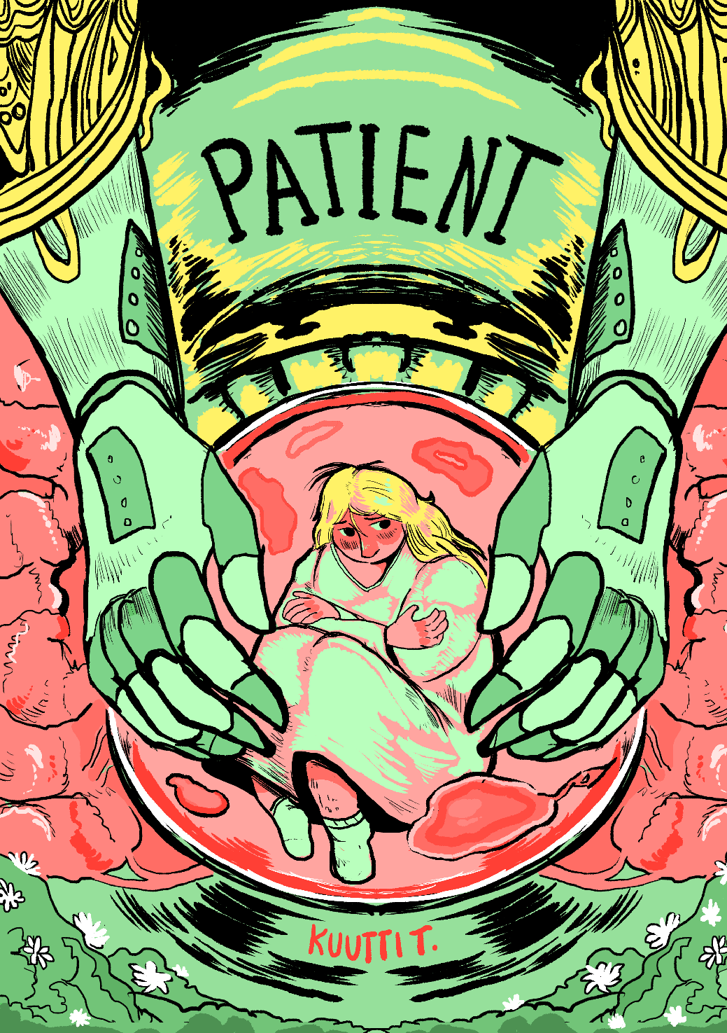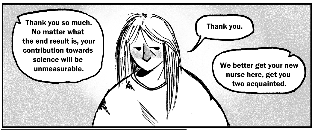 Patient is a 31 pages long black and white comic (36, if you include covers and flyleaves.) The comic is in English.